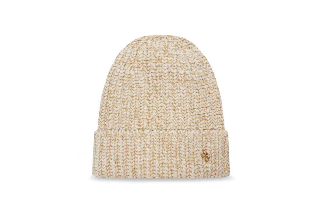 Cappello ragazza Guess, in ciniglia, tessuto lavorato a maglia con trama lurex, modello zuccotto, risvolto e logo