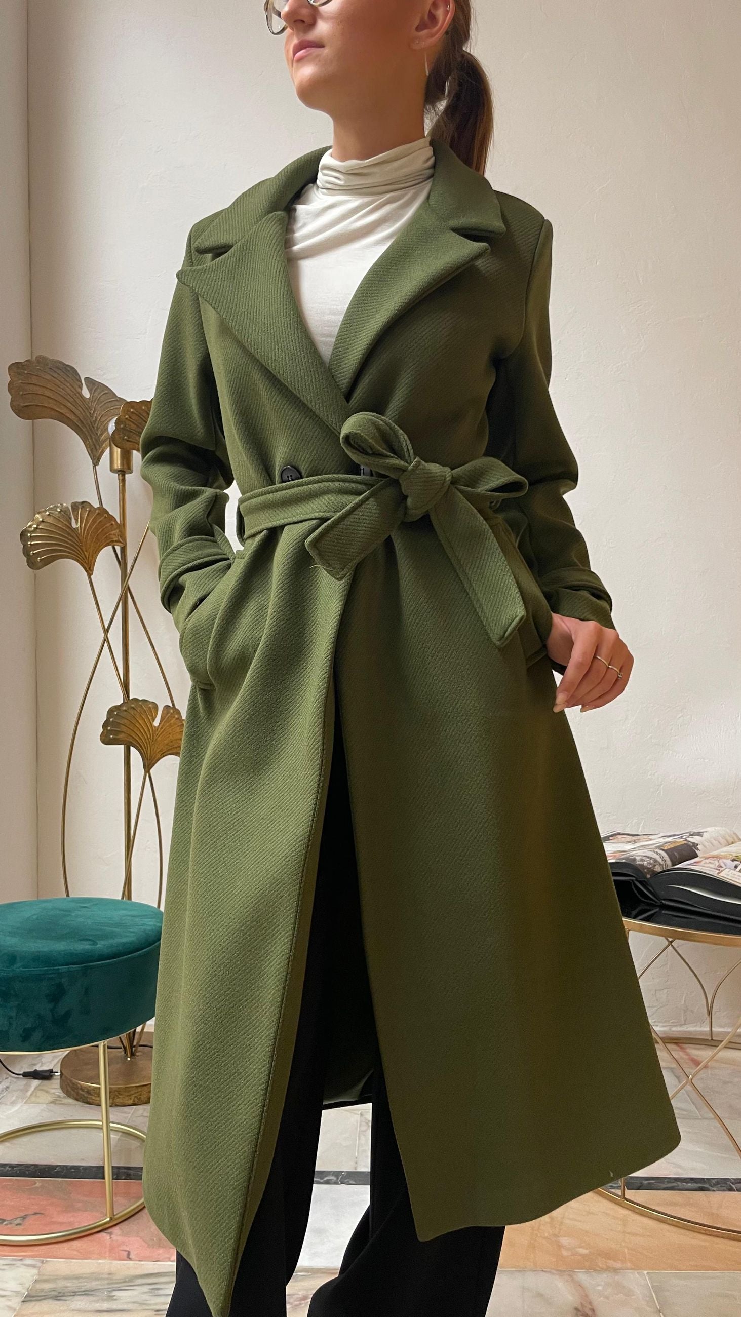 AKE' Cappotto Doppiopetto Lungo con cintura