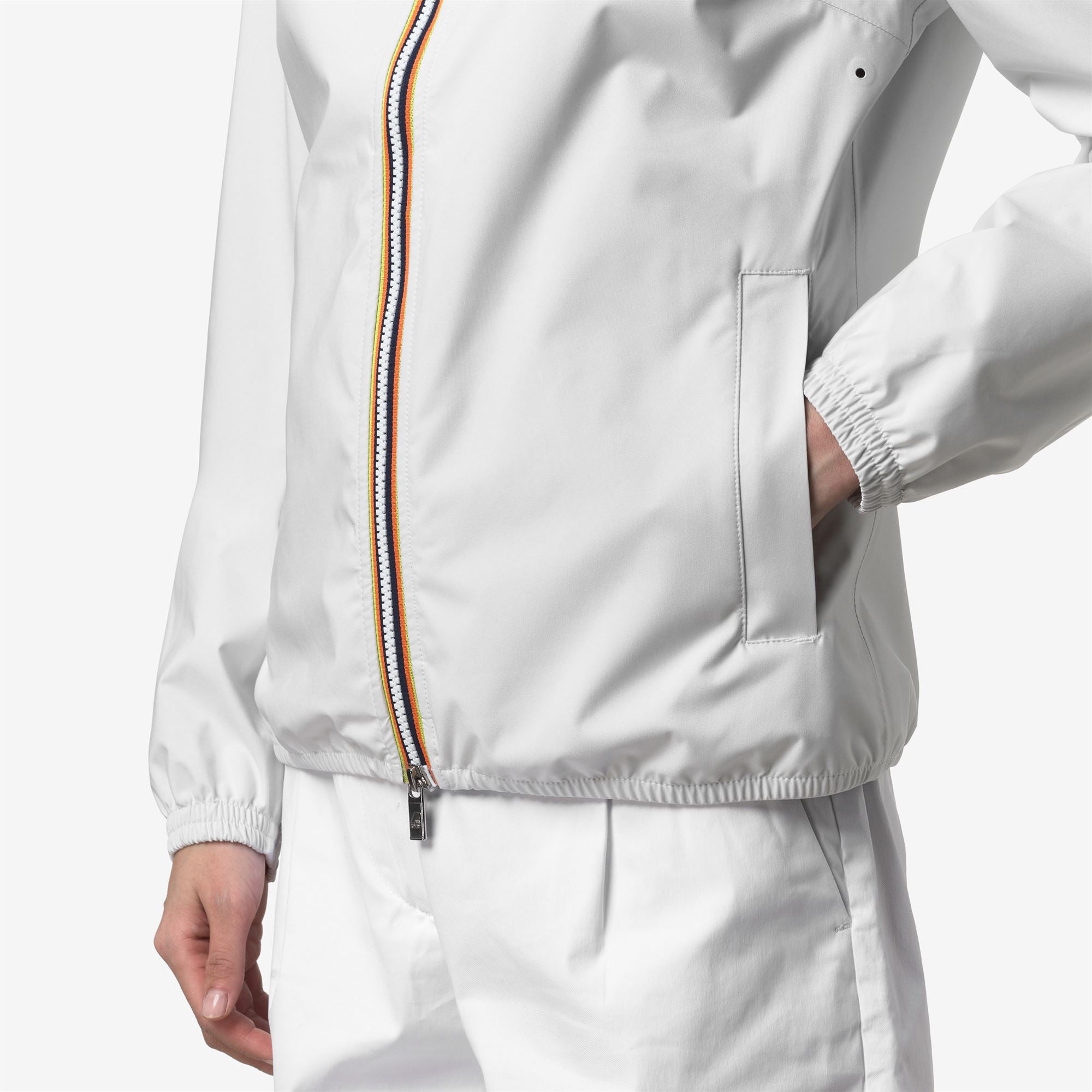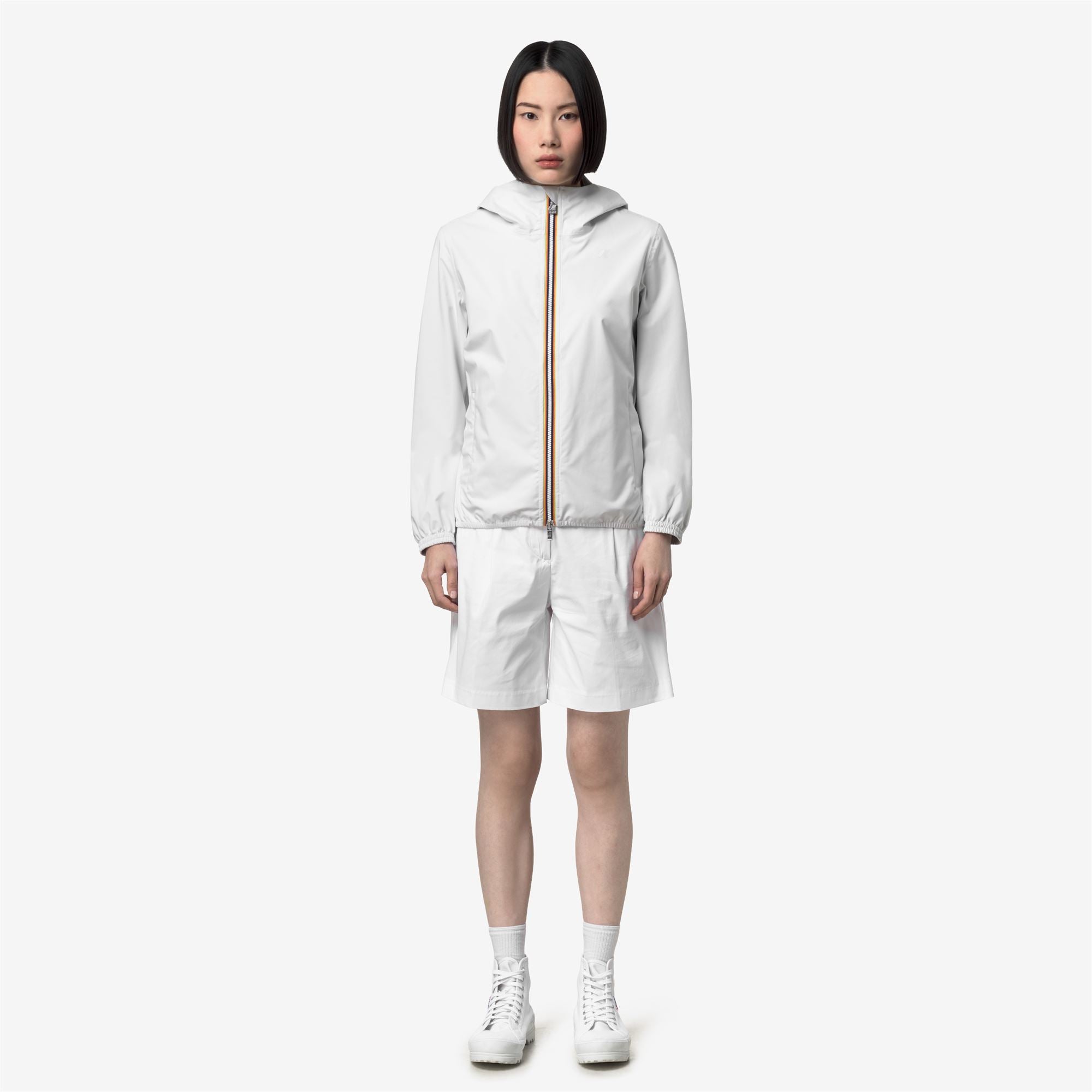 Lily è una giacca corta da donna ideale per le mezze stagioni e con vestibilità slim, realizzata in tessuto tecnico elasticizzato, che segue i movimenti e protegge dal vento e dalla pioggia fino a 10000 colonne d’acqua. L'interno è foderato con una membrana isolante decorata con lettering K-Way stampato all over in tonalità argento. Le tasche laterali con zip, il cappuccio avvolgente, i polsini e i bordi elastici sono dettagli funzionali che garantiscono aderenza e una vestibilità comoda e veloce.